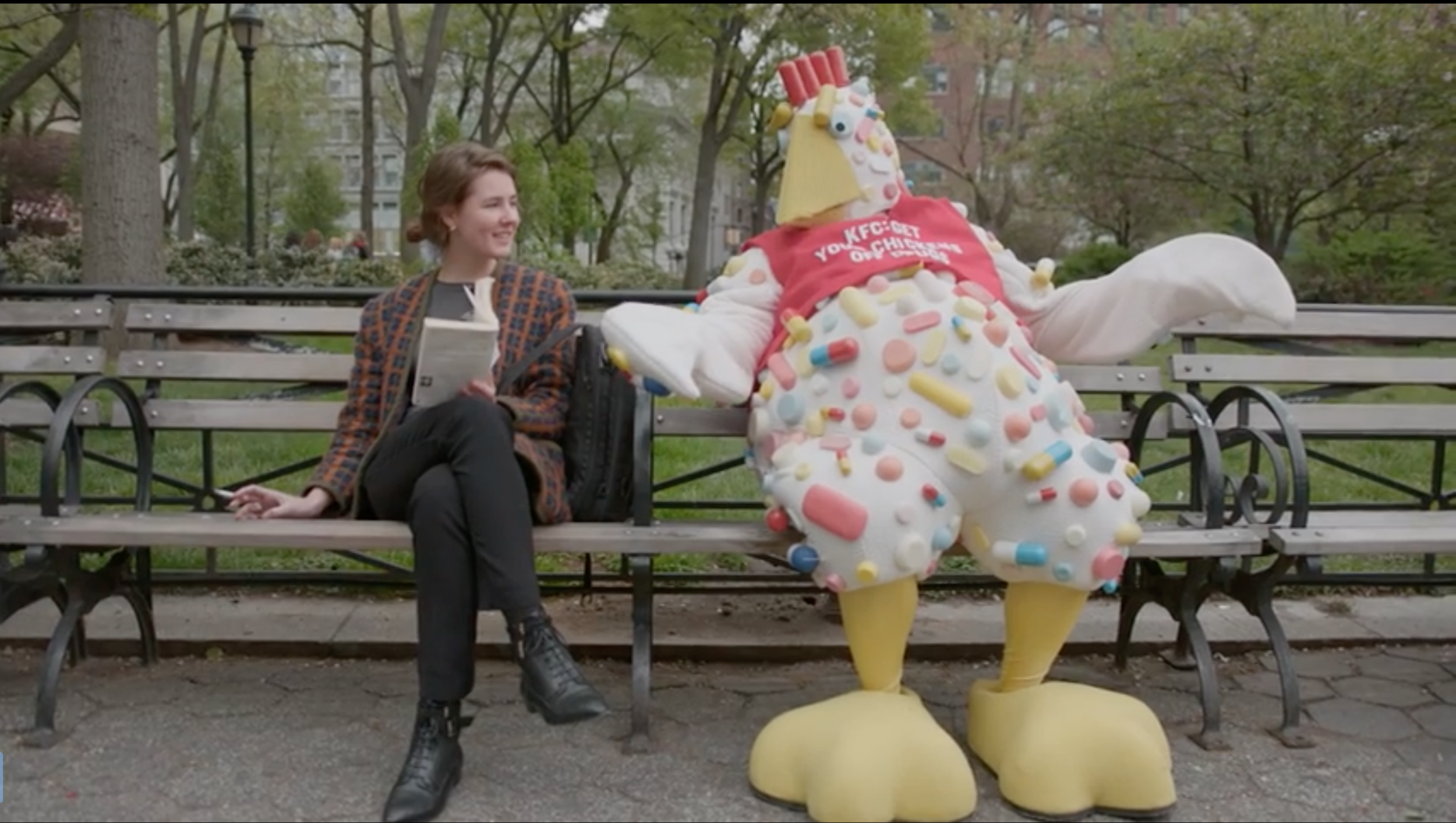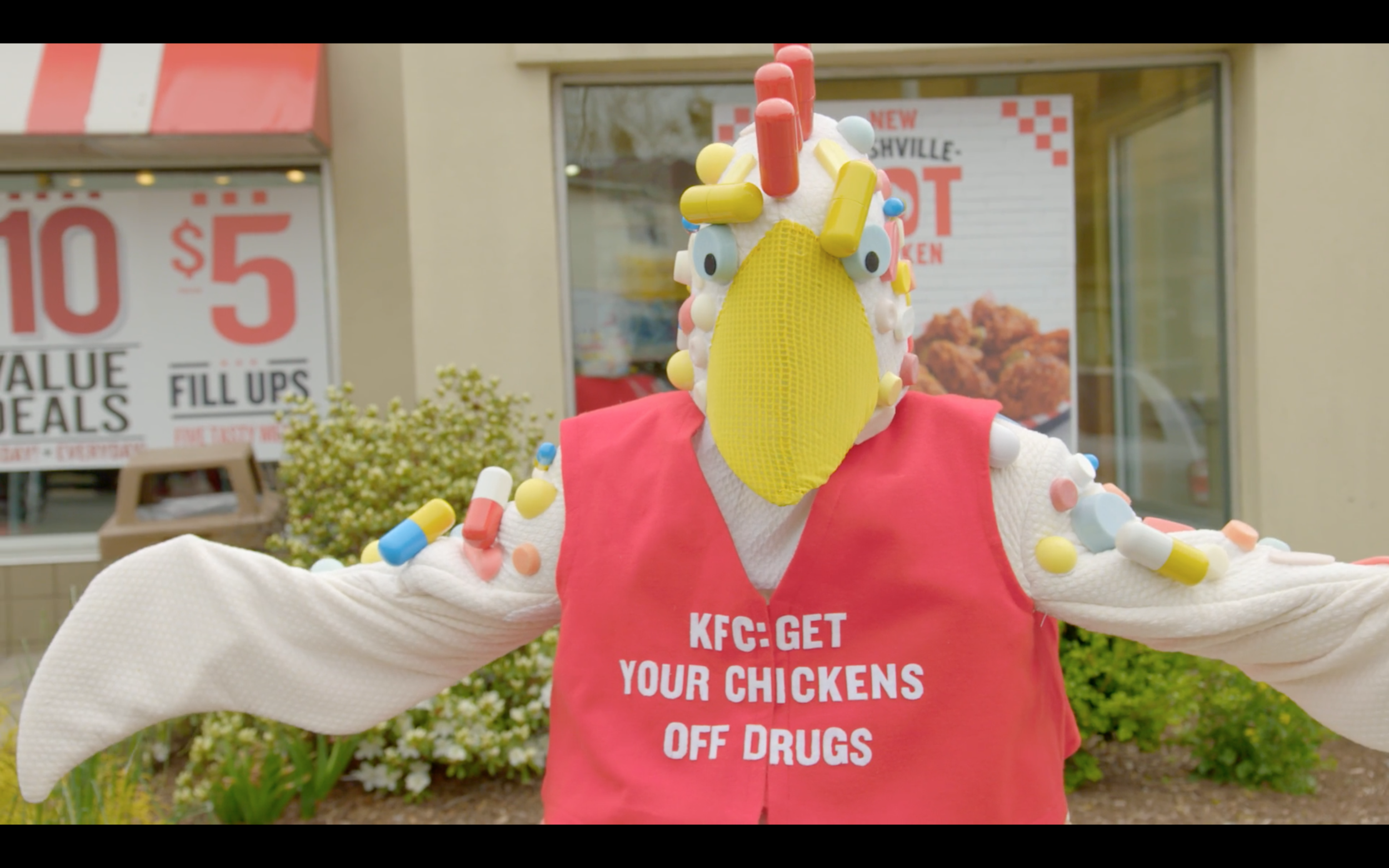 Auntie Biotic, an improv comedian in a pill-covered chicken suit, visited KFC spreading the word about antibiotic use to the audience KFC cares about most—its customers.